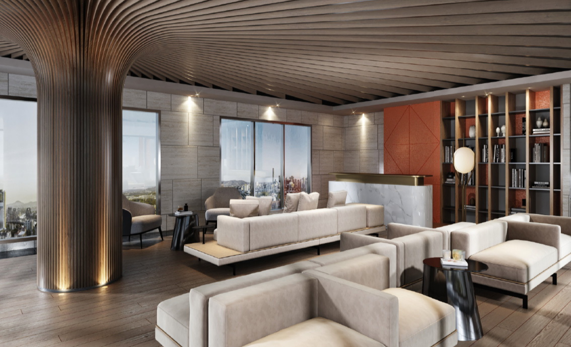 帝景1號公設由豪宅設計名家李俊平規劃,整體風格強調飯店式迎賓與高樓層景觀體驗。